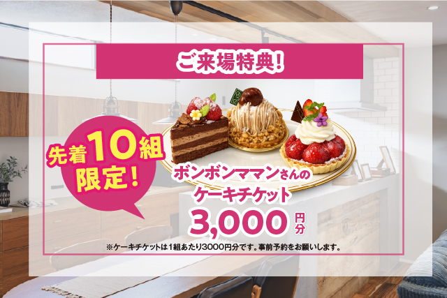 ※一家族様1回限りとさせて頂きます。なお、再来場・商談中・ご成約後の方は対象とはなりませんのでご了承ください。